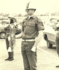 In 1972 I left home right after I turned 18 and enlisted in the Air Force. We were still at war with Vietnam, and the government was using a "draft numbering" system like a lottery to see who would be drafted. My number was something like 326 out of 355, so it was really unlikely that I would have been drafted, so I enlisted instead. It wasn't long after basic training that I discovered the Keesler AFB Drum & Bugle Corps when I was transferred to Keesler for electronic training. I was in the Keesler D&B Corps from 72-73. Playing a two-valve baritone, I seemed to fit right in. We dormed in the old two-story barracks across from the BX. We marched every day for troop change, different ceremonies and what not. Two of my biggest thrills in life were to march in a pregame show in New Orleans at the Superdome for an NFL football game between the Dallas Cowboys and the New Orleans Saints, the other being able to march in the New Orleans Mardi Gras parade! They had us marching in front of Pete Fountain's convertible limousine, and let me tell you, he was lit! (I think a lot of people were that day!) I did have some excellent pictures from my "bum-out" when I received my rope, but they were destroyed by a flood a few years ago. I do think I may have some other pics somewhere, I'll try to find them. I'm so glad someone is doing a webpage for the Blue Knights...there was one a while back but it seemed rather inactive. I did go back to Keesler TDY sometime in 74 I believe and visited the Corps, and remember that there was a photo album of every Corpsmen that had been there...it would be nice if that photo album was still around, and the pics could be scanned and posted on the net! I had volunteered to do that a while back, but don't think the pics were available or the email may never have gotten through... ![]() (This) pic on my website was actually an 8X10 glossy that someone took, and somehow it miraculously made it through all these years. The tuba player in formation behind me was a guy named Richard Kroll from Arizona, Phoenix I believe. I remember other names too. I found a fellow corpsman a few years back by the name of Cass Gowins, from Ohio. He was easy to look up on the internet. Seems the more unique the name, the easier it is to find. I live near San Antonio now, and work (believe it or not) at Lackland AFB! I am a contractor for Lockheed Martin and we do the computer support for Wilford Hall Medical Center. |