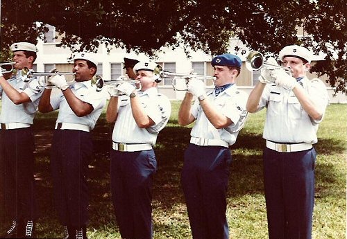 I had only vaguely heard of drum and bugle before Keesler. Some of the guys that had trickled through the door came from the world of DCI. They opened my ears to the sound of drum & bugle; what great stuff this was. My room dog, Ken, spent some time with the Madison Scouts. He would play some pretty good tapes of this corp or that corp. ![]() Having been a big fan of Maynard Ferguson I loved the wall of sound that DCI pushed out. I still watch the DCI championship competition on PBS when I can catch it. Some day I hope my kids will want to do this ( I have 3 boys and three horns) it has to be a great experience. ![]() The Worlds Fair was that summer, we went to New Orleans to spend a day marching and playing. I remember walking up to Pete Fountain’s club and peeking in the side door to see what was going on. I can’t remember who was with me I think it was Joe Lopez (we were in our uniforms). The guy watching the door wouldn’t let us in, a minute later, another guy came out and pointed us to a couple of empty seats at the bar so that we could watch the end of the set. ![]() Remember any of the negative stuff? Whack n Puff? Beat and Blow? I’ll never figure why some of the instructors persisted in these comments. Yes our primary purpose was to learn a technical skill to do our jobs. My work never suffered because of D&B, my beer drinking probably did. My grandmother told me once, "You’ll always find the time to do what you really want to do." The Blue Knights were a great diversion. I was proud to represent the Air Force in the Biloxi community in this small way. ![]() I